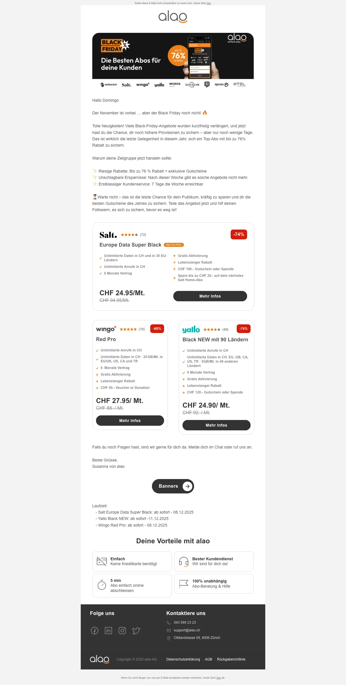 alao Aktion Schweiz: mehr als 50 % Rabatt auf Internet-Abos