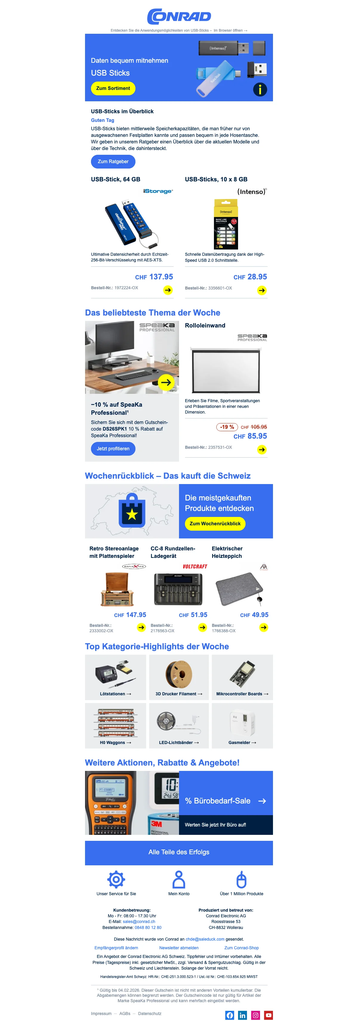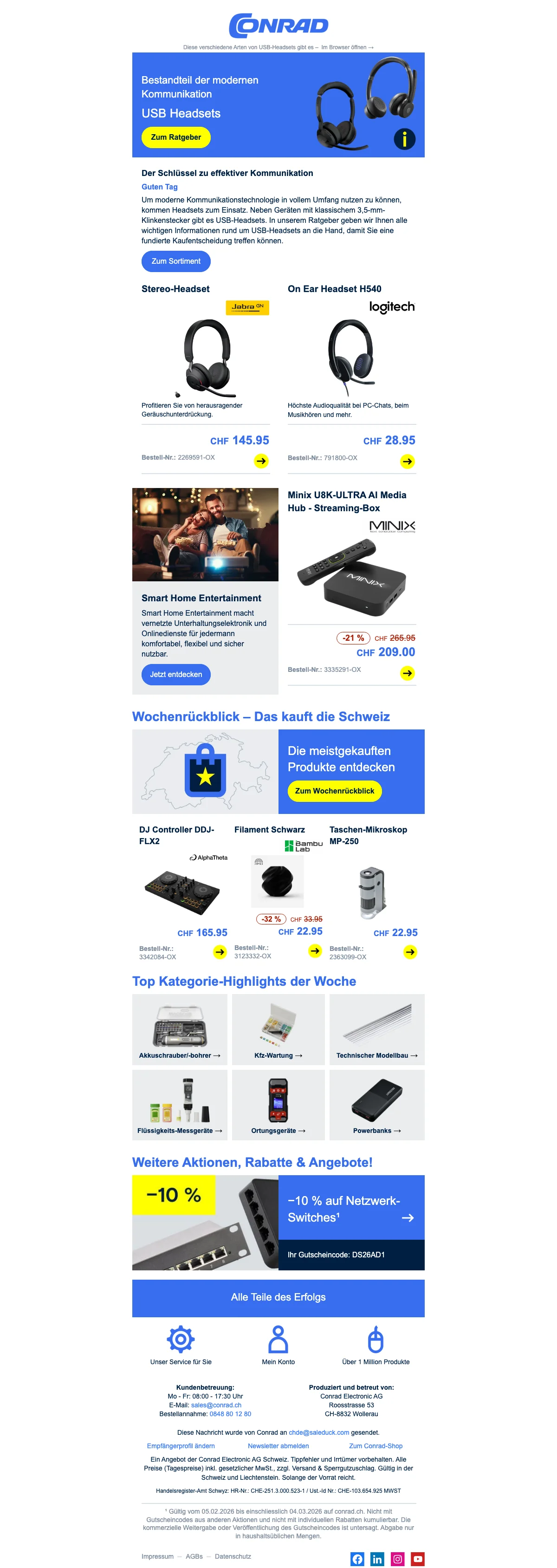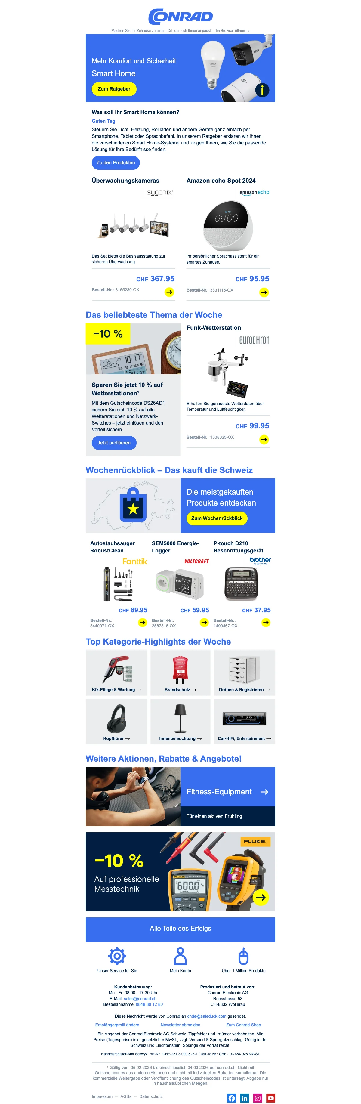 Conrad.ch bietet seinen Kunden stets gute Preise und viele Sonderaktionen und Rabatte. Nutze auch die Gutscheincodes von Saleduck.ch, um immer die besten Rabatte und Angebote zu erhalten. So einfach kannst du jede Menge Geld beim Elektronik-Einkauf sparen.