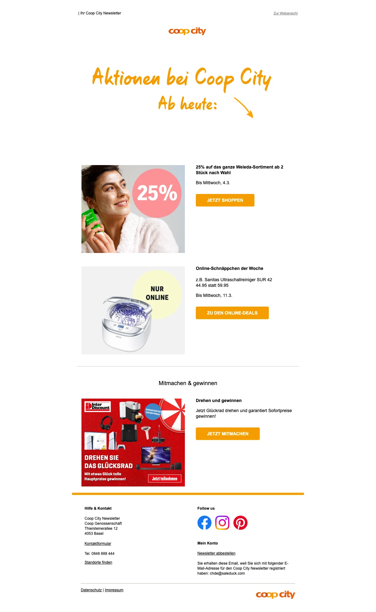 Saleduck ist ein unabhängiger, werbefinanzierter Gutschein-Vergleichsdienst. Die Angebote auf dieser Website stammen von Unternehmen, von denen Saleduck eine Vergütung erhält. Diese Vergütung kann sich darauf auswirken, wie und wo Gutscheine oder Produkte auf dieser Website erscheinen, einschließlich beispielsweise der Reihenfolge, in der sie innerhalb der Auflistungskategorien erscheinen. Saleduck hat direkte Verträge mit den von uns beworbenen Werbetreibenden. Wir veröffentlichen nur Gutscheine, die wir direkt vom Werbetreibenden erhalten oder wenn der Werbetreibende selbst für sie wirbt. Wir veröffentlichen keine Gutscheine von anderen Websites erneut. Saleduck überprüft die Gutscheine manuell, bevor sie veröffentlicht werden.
