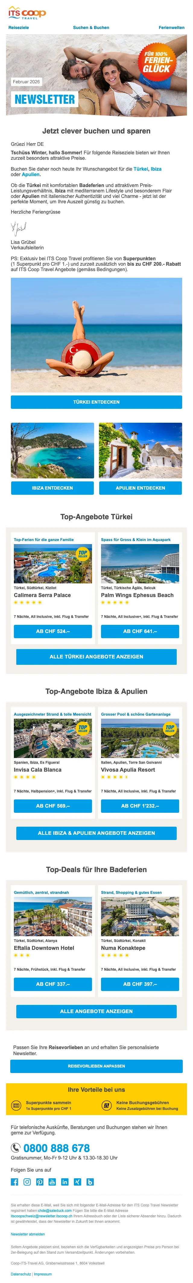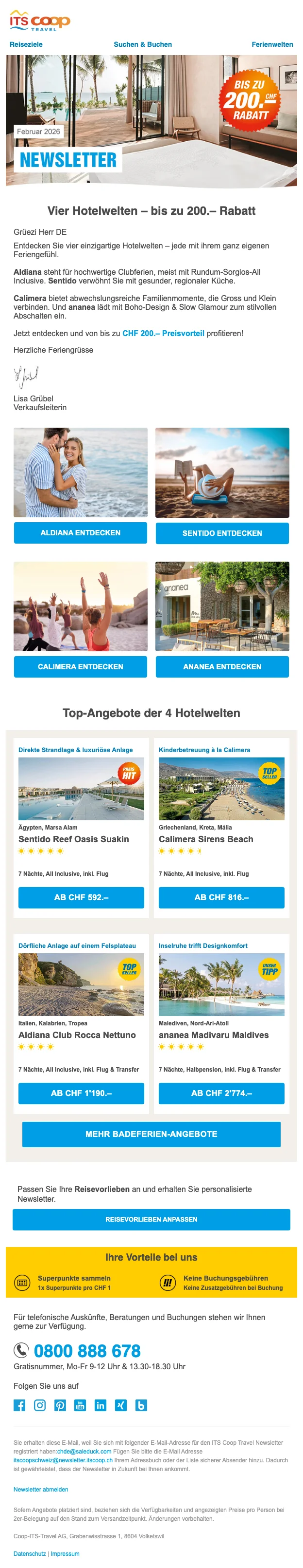 ITS Coop Travel Wellness & Strand CHF 200 Rabatt auf ferien sichern