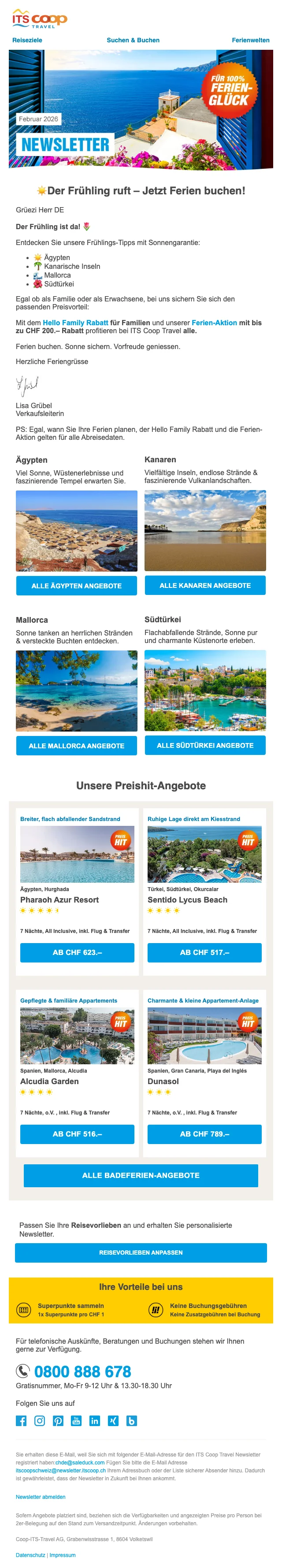 | FERIEN50 | ITS Coop Travel Schweiz: Rabatt von CHF 50.- im März für dich |
