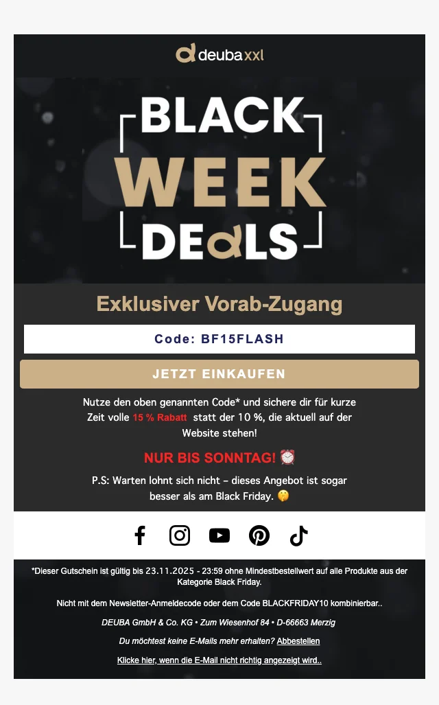 DeubaXXL Black Friday 15 % Rabatt auf alles