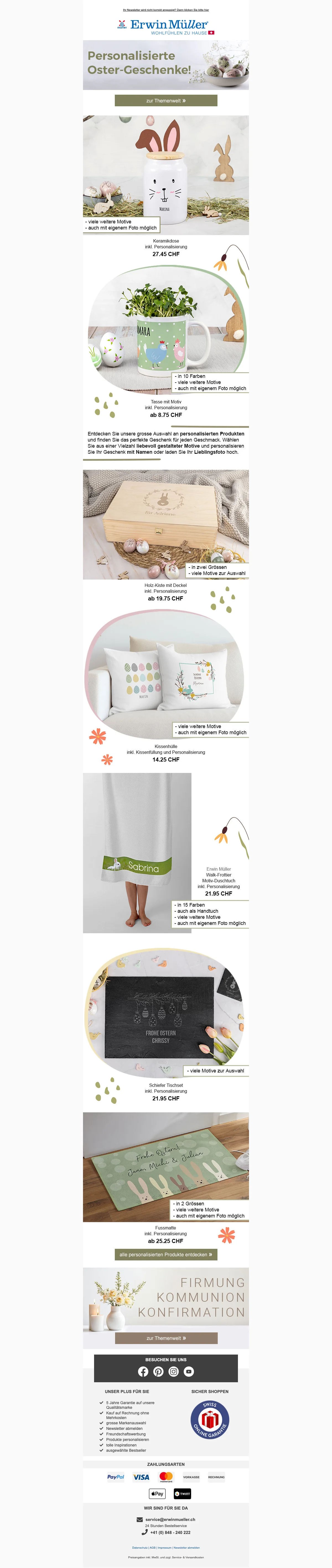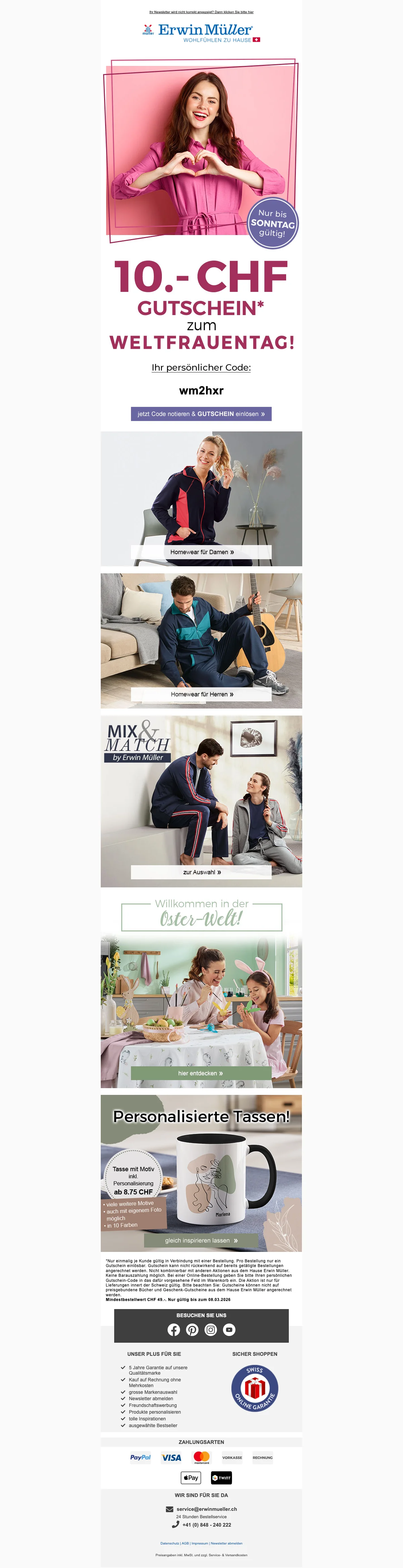 Zwei kleine Spar-Tipps von uns: Wenn auch du ein Fan der Erwin Müller Handtücher bist und auch von den super schönen Erwin Müller Tischdecken, bzw. der Erwin Müller Tischwäsche gar nicht genug bekommen kannst, dann browse auf jeden Fall die Rubrik Sale. Dort haben wir tolle Rabatte von bis zu minus 50% und mehr gesichtet! Über den Gutschein Erwin Müller haben wir dir ja bereits ein wenig erzählt. Wir Saleduck Leute lieben Gutscheine und Aktionscodes und posten diese immer ganz fleißig auf saleduck.ch für dich. Erwin Müller hat mit seinem umfangreichen und qualitativ hochwertigen Sortiment schon etliche Kunden begeistert und auch du könntest bald einer von denjenigen sein, der seiner Bettwäsche von Erwin Müller erstmal ein schönes eingesticktes Monogramm verpassen lässt. Diese Art der Personalisierung und noch vieles mehr (z.B. Gravuren) findest du nämlich in der Hauptkategorie "Manutextur". So, jetzt musste aber selbst ein wenig entdecken gehen. Have fun!