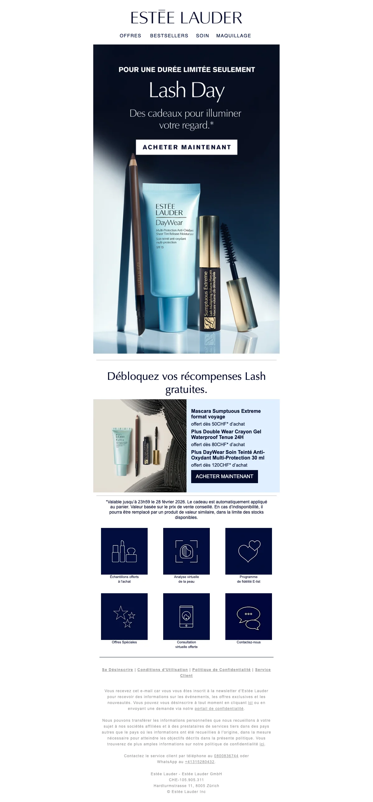 Estée Lauder valentinstag -25% auf alles und gratis-geschenk ab 80CHF