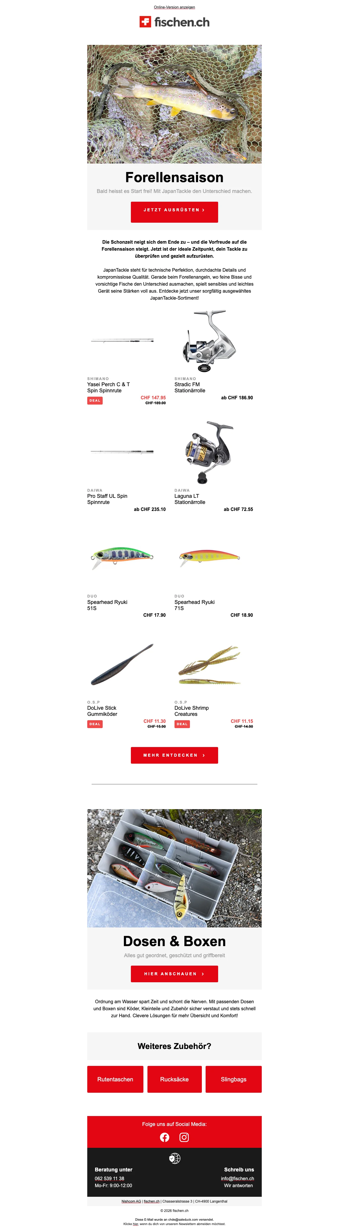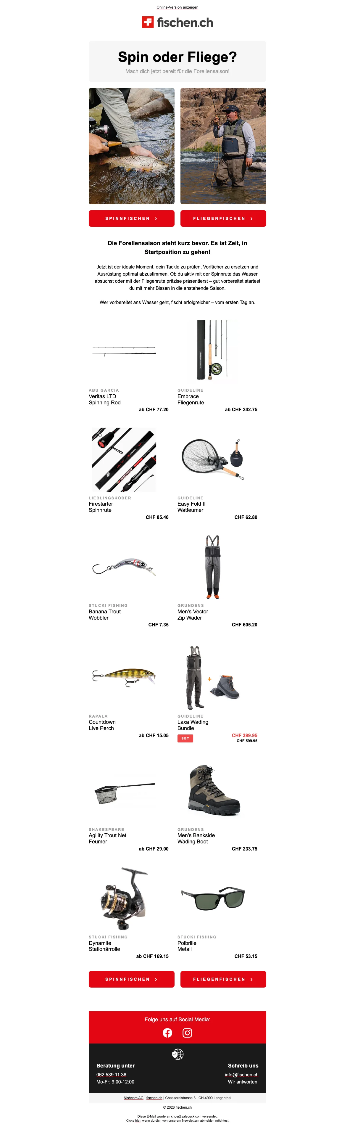 fischen ch Gutscheincode: Erhalte CHF 10.- Rabatt bei Newsletter-Anmeldung