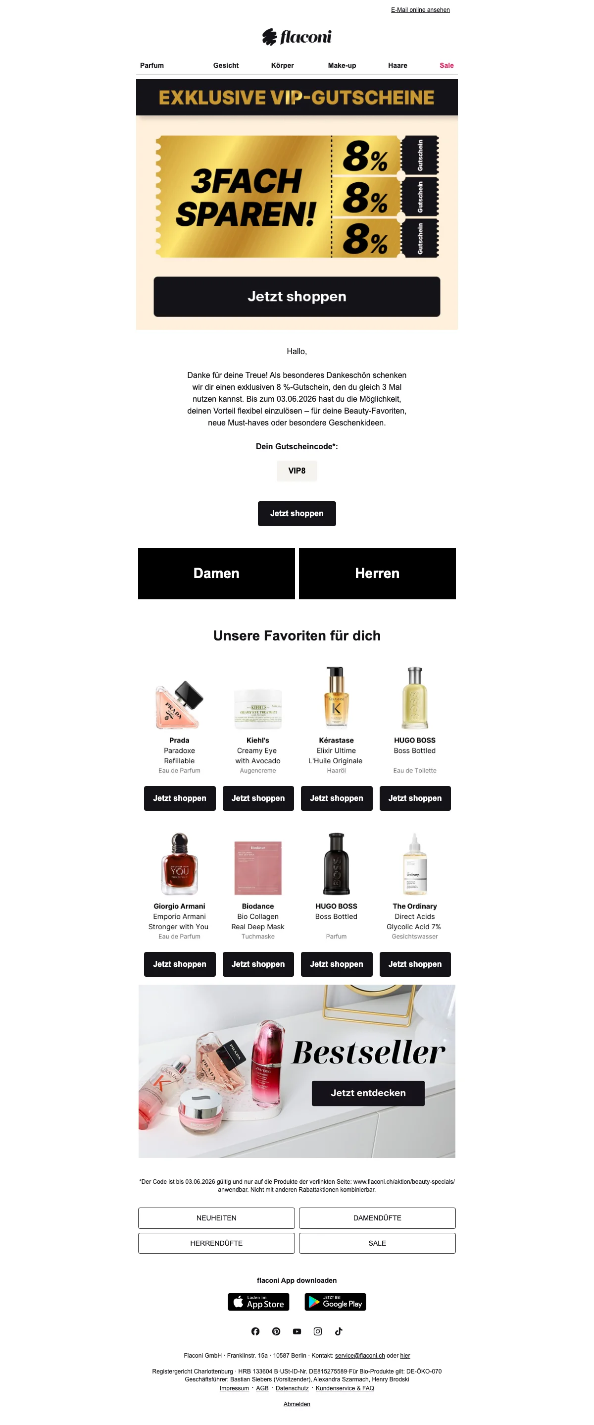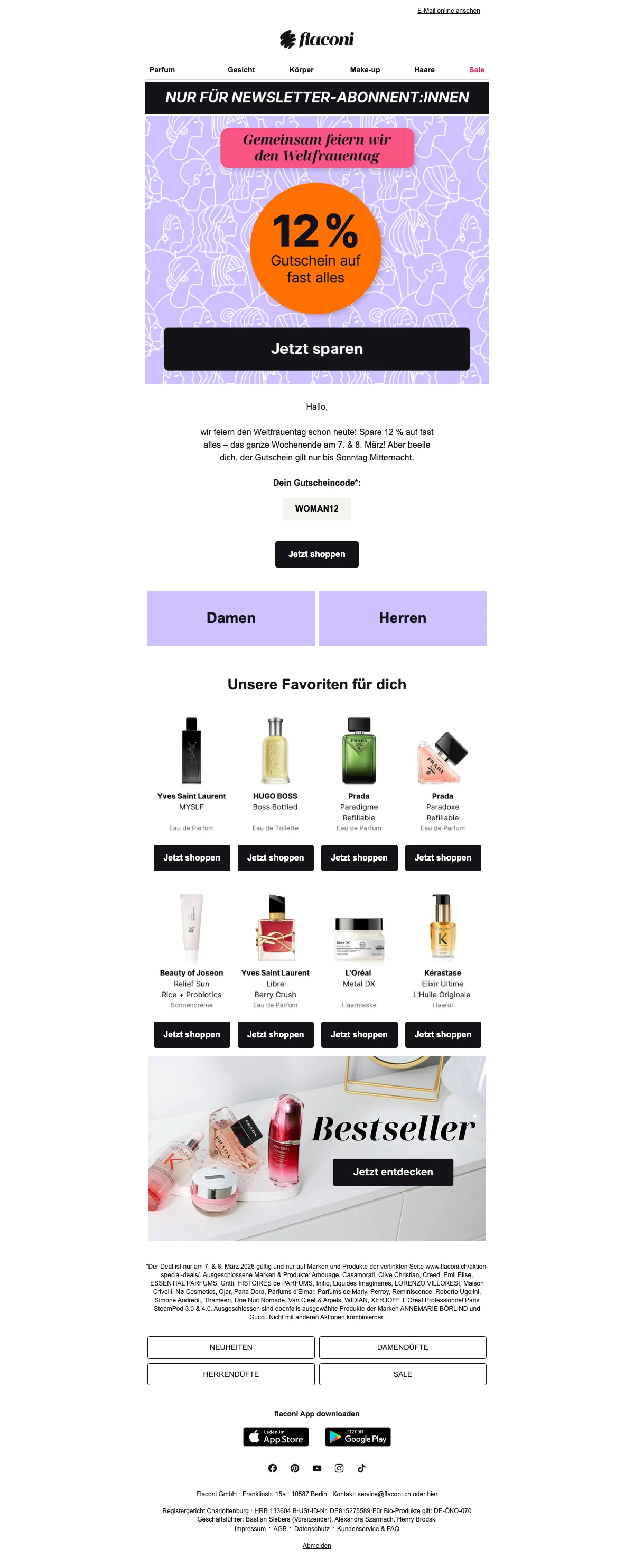 Flaconi gutschein 12 % Rabatt ab 49 CHF auf parfüm kosmetik