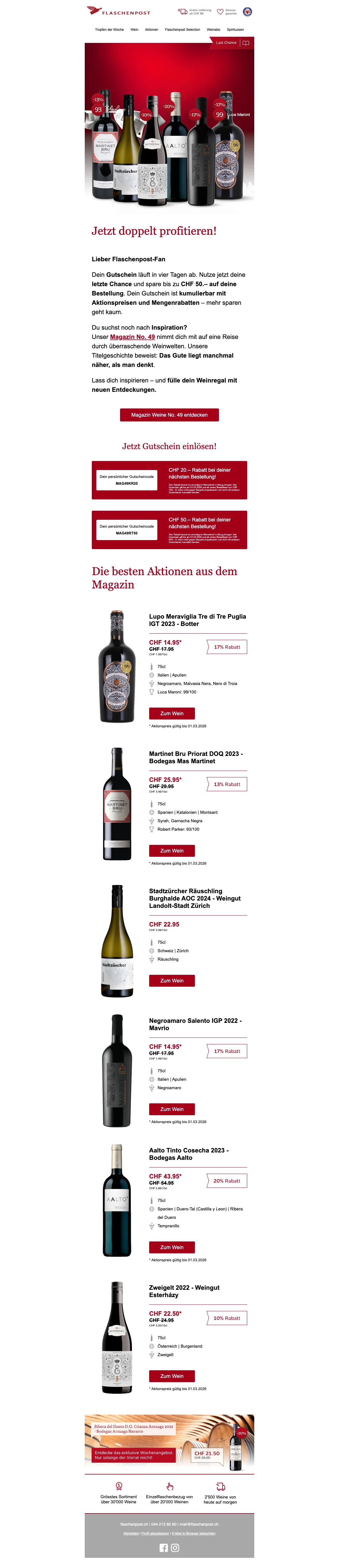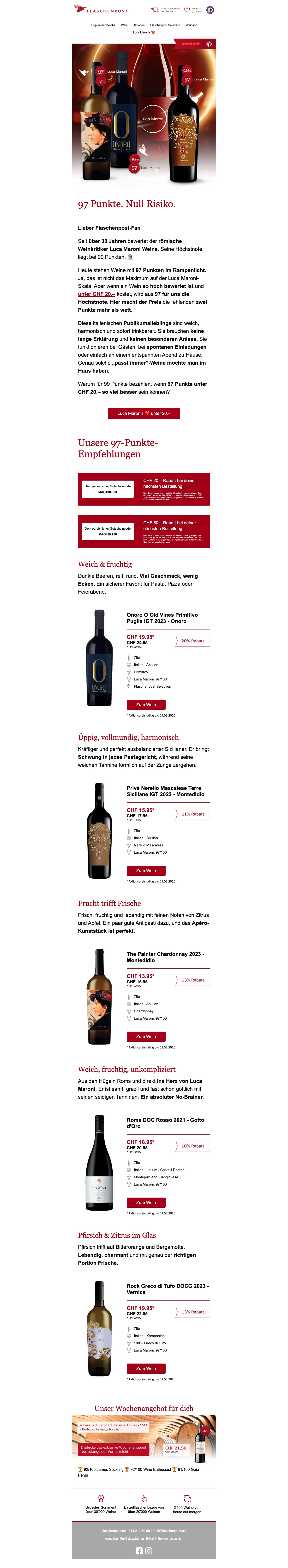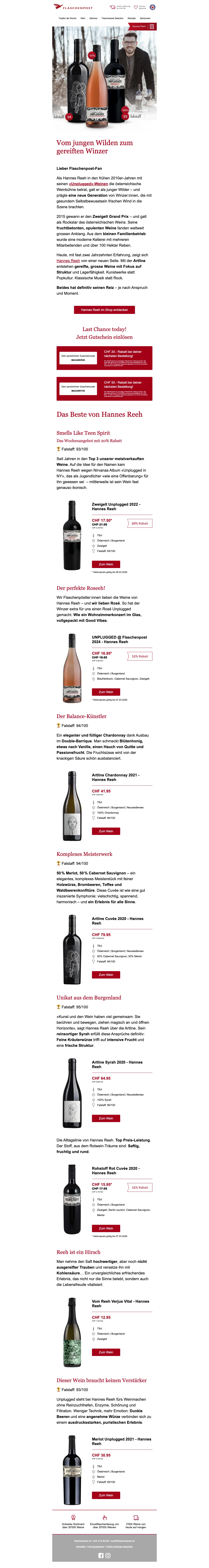 Eine Flaschenpost am Strand finden ist mit Sicherheit eine schöne Sache - wesentlich beliebter ist dagegen jedoch das Trinken eines schönen Gläschens Wein! Das dachten sich wohl auch die zwei Firmengründer Renzo Schweri und Dominic Blaesi damals, als sie das Unternehmen hinter der Webseite auf die Beine stellten. Beide waren ein wenig genervt davon, wie schwierig und zeitaufwendig es vor 10 Jahren noch war, einen guten Weinversand online zu finden. Schnell und leicht sollte das Weinkaufen ihrer Meinung nach erfolgen und so ward die Idee geboren, eine Art Amazon für Weine online ins Leben zu rufen. Heute ist die AG mit Sitz in Zürich die größte virtuelle Weinhandlung in der ganzen Schweiz. Mehr als 15.000 Weine aller Art und von 70 der renommiertesten Schweizer Weinhändler kannst du heute mal so eben "im Vorbeigehen" auf der Website shoppen. Darauf erstmal ein Stösschen!