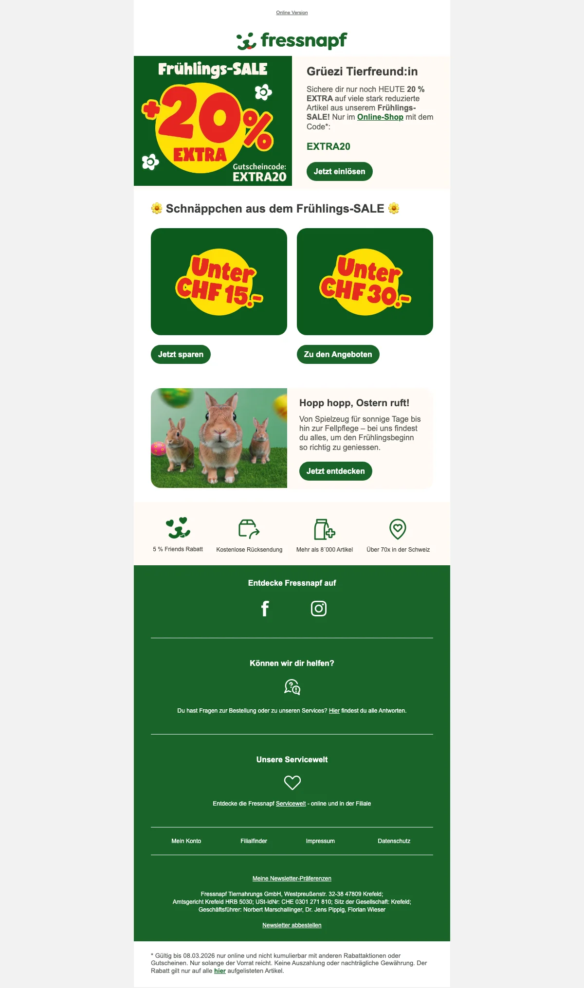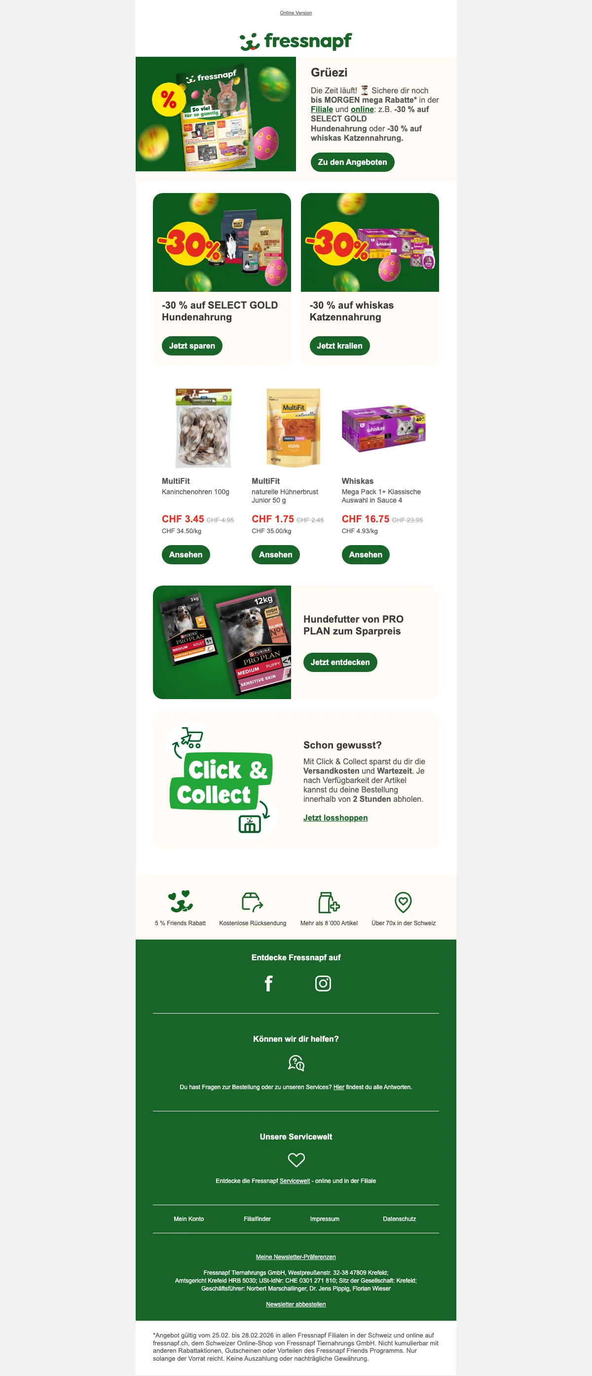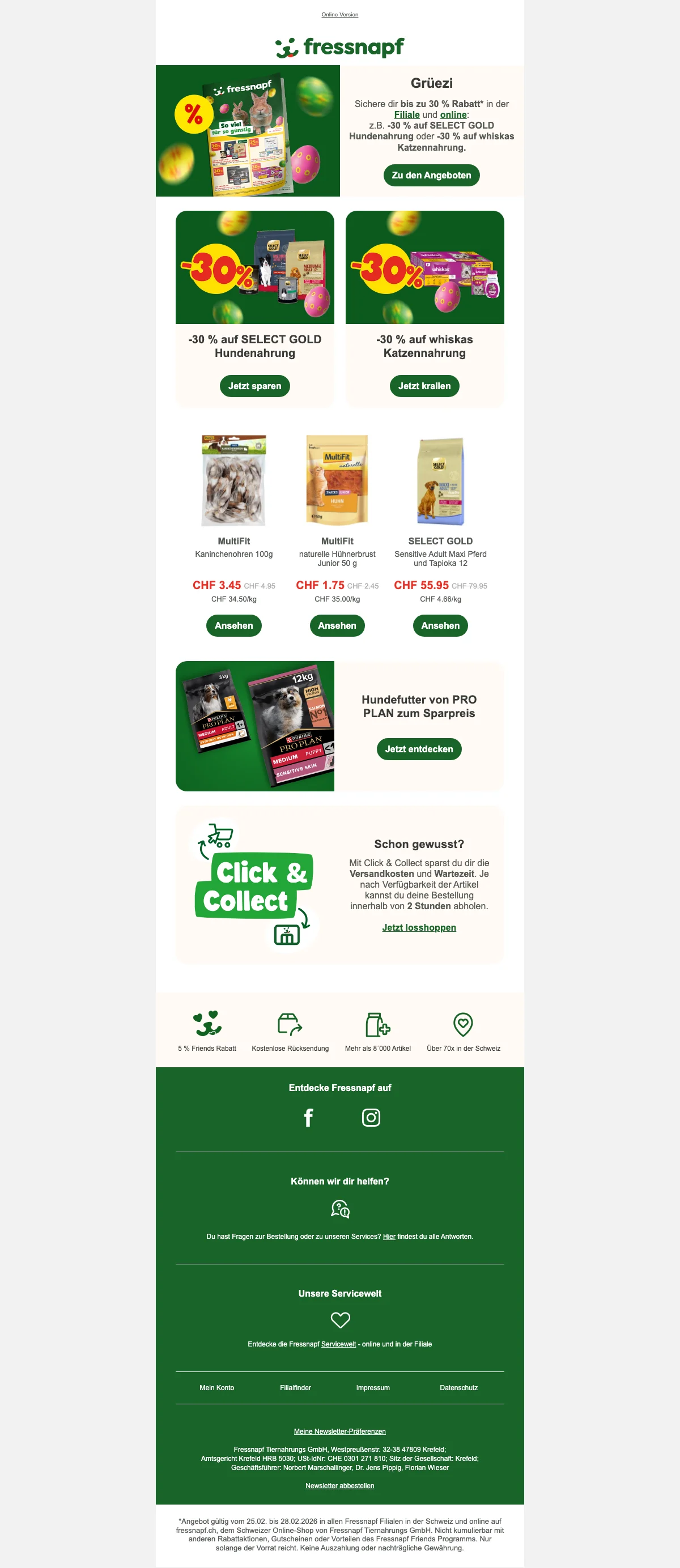 Bestell jetzt Fressnapf Eigenmarken und spare 10%. Fressnapf bietet die besten Angebote auf Artikel für Haustiere an. Schlag jetzt zu und hold dir Top-Ware zum besten Preis!