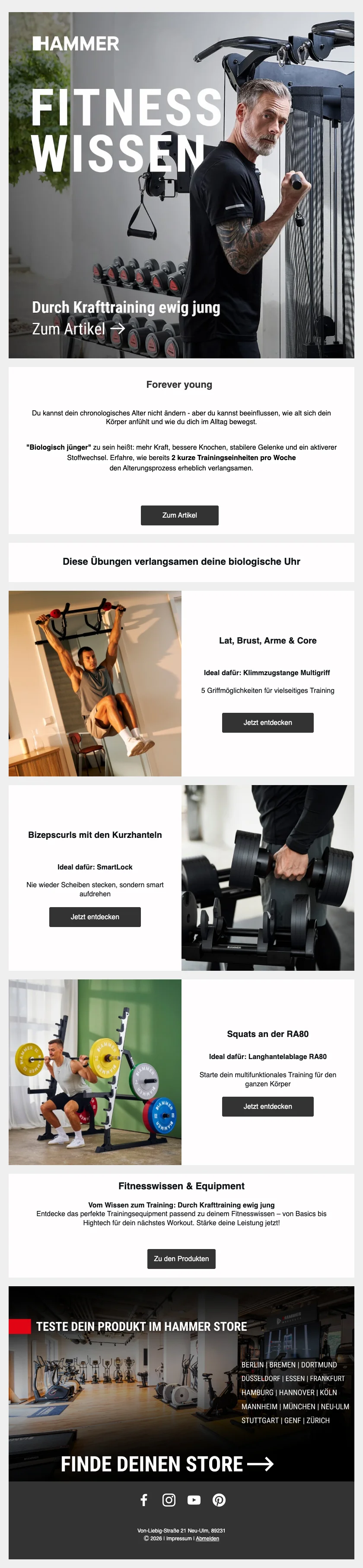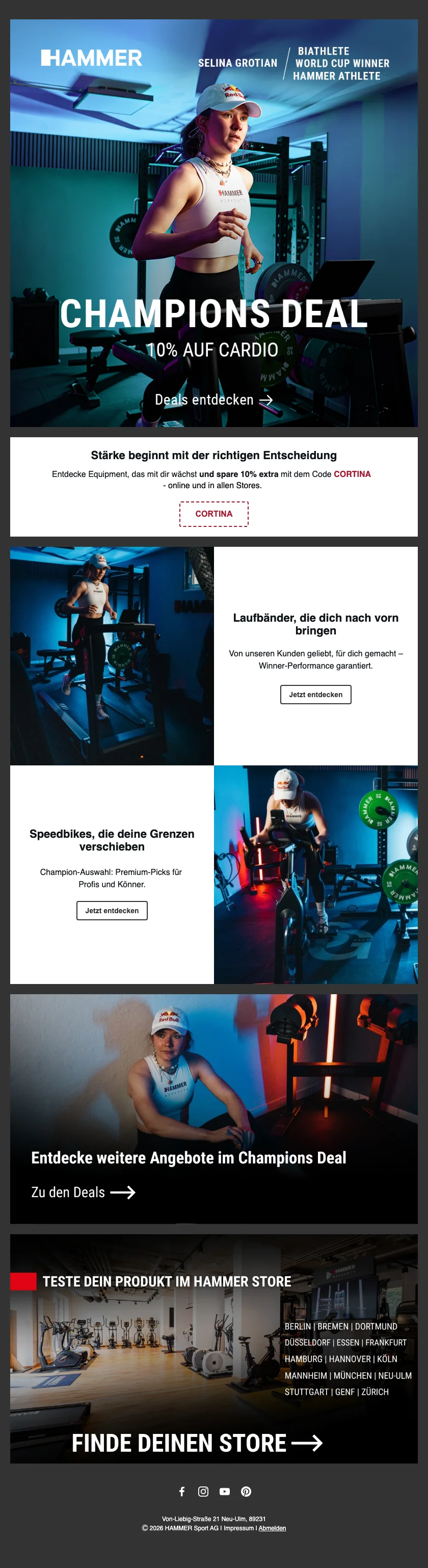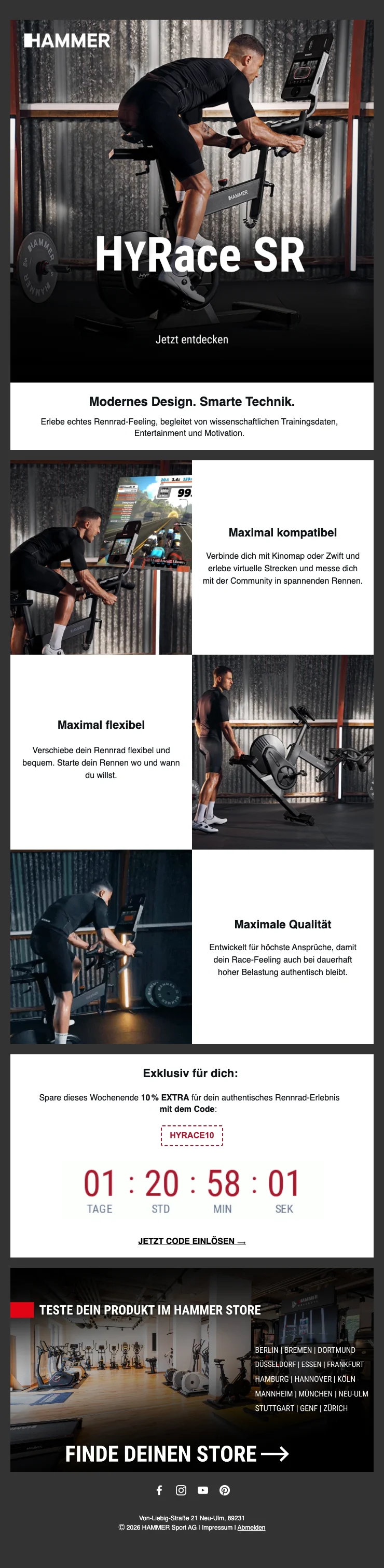 Hammer Fitnessgeräte Ausdauer-Sonderangebot (100 CHF Rabatt auf Fitnessgeräte)