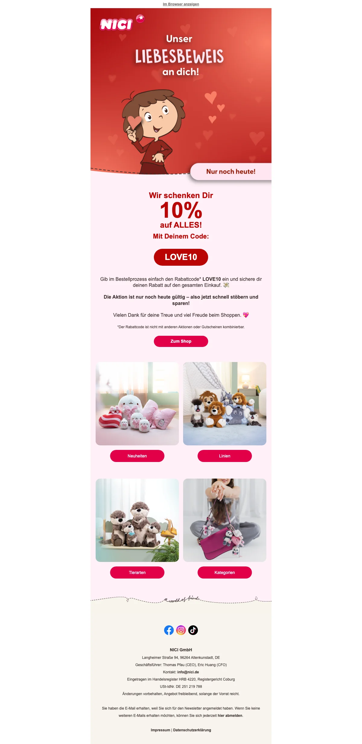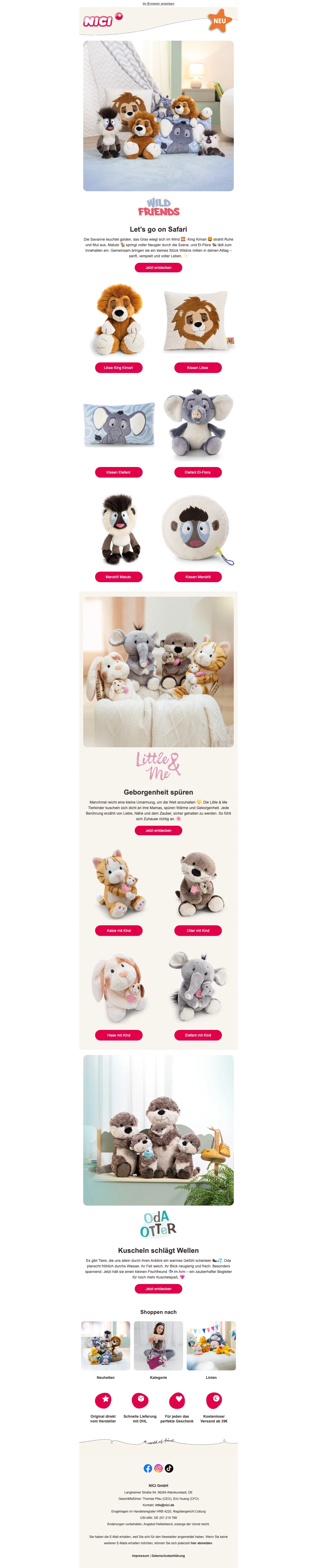 Sicher dir bis zu 50% Rabatt auf bestimmte Artikel von NICI. Hier bekommst du die süßesten Plüsch- und Kuscheltiere jetzt zum Sonderpreis. Bestell dir die Sonderangebote und spare bis zu 50%.