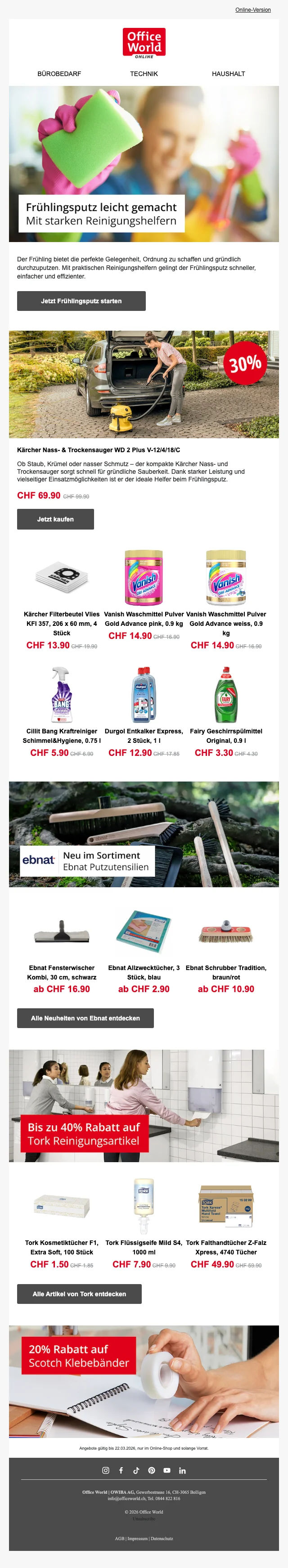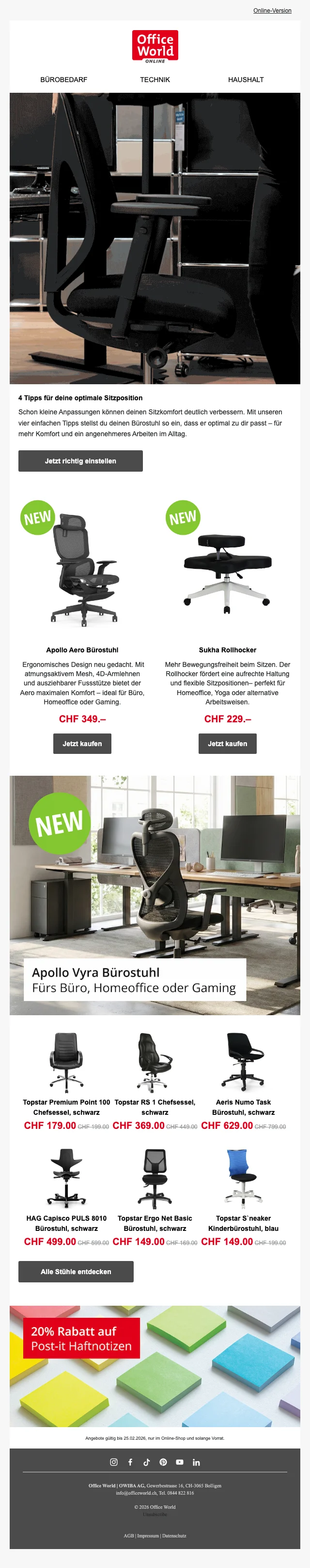 Melde dich jetzt für den Newsletter von Office World an und erhalten einen Gutschein im Wert von CHF 10.-.
