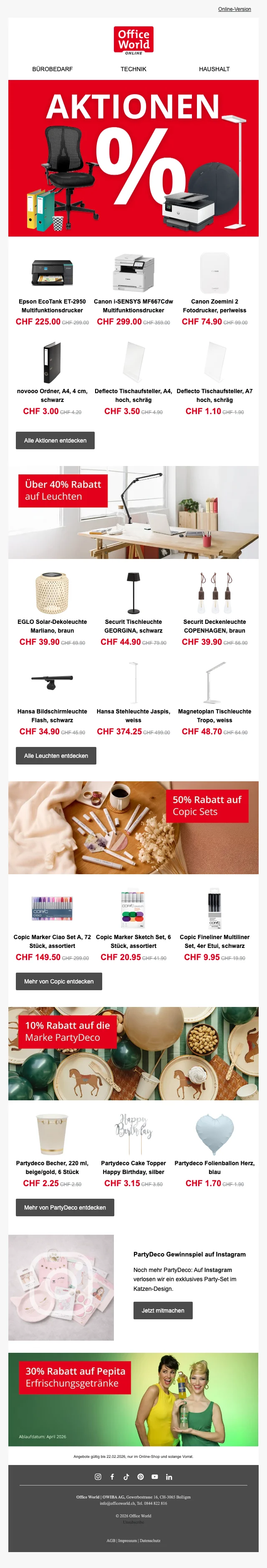CHF 10.- Gutschein Officeworld für die Anmeldung des Newsletters