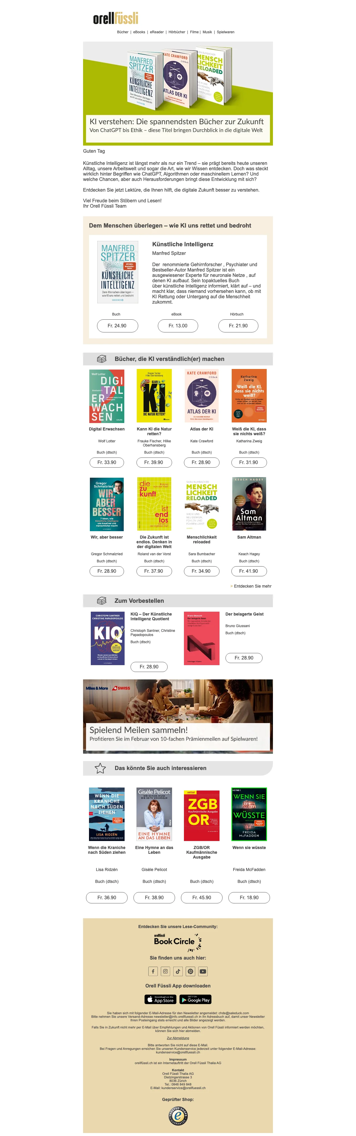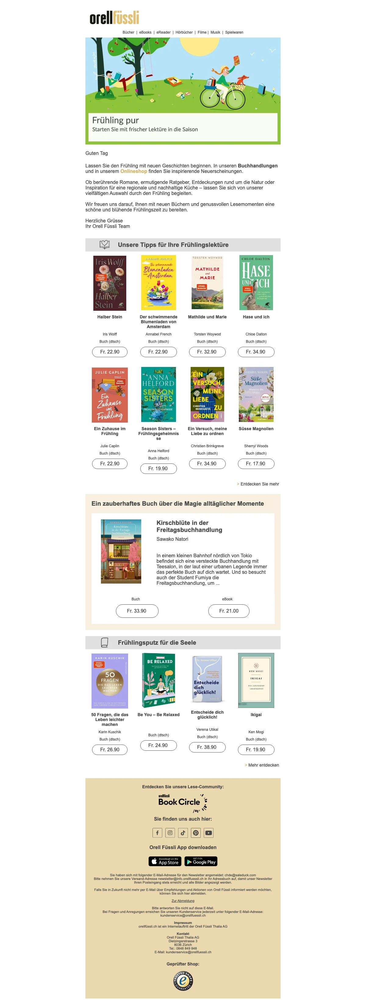 Brauchst du noch Lektüre für den Strand oder für die Badewanne? Dann besuche jetzt diesen Online-Shop und lasse dich von tollen Angeboten inspirieren. Orell Füssli stellt immer die besten Buchtipps und saisonale Empfehlungen für dich zusammen. Für eine bessere Übersicht sind die Bücher auch kategorisch sortiert, damit du alles rund um die Fußballeuropameisterschaft, Schweizer Bestseller oder Haus und Garten auf einen Blick findest. Dieser Online-Shop bietet jedoch nicht nur Bücher, E-Books und Hörbücher, sondern auch ein umfangreiches Sortiment an Filmen, Games, Musik und Papeterie.