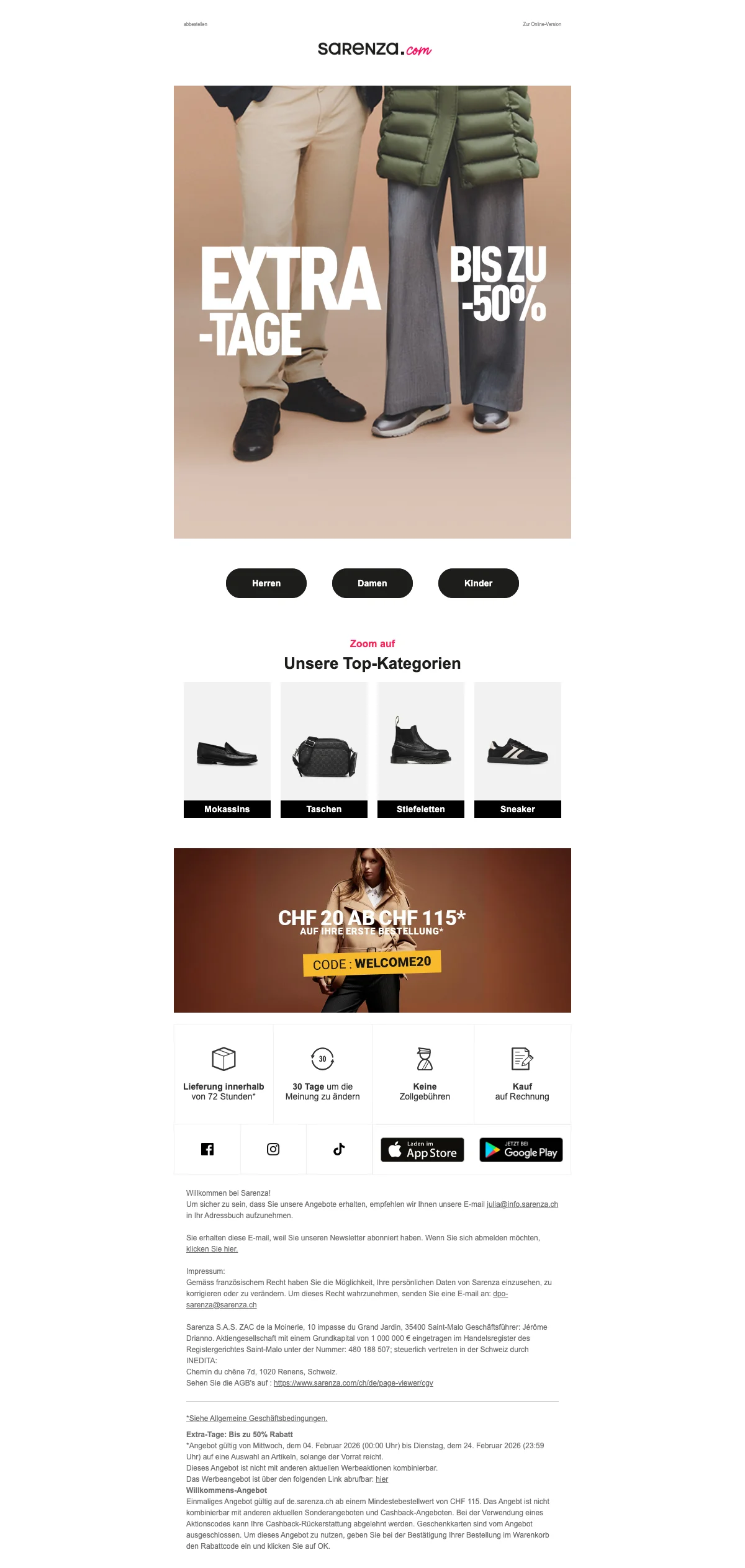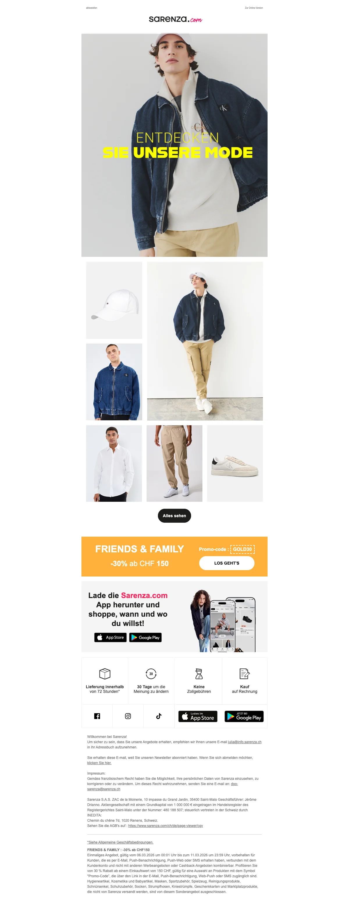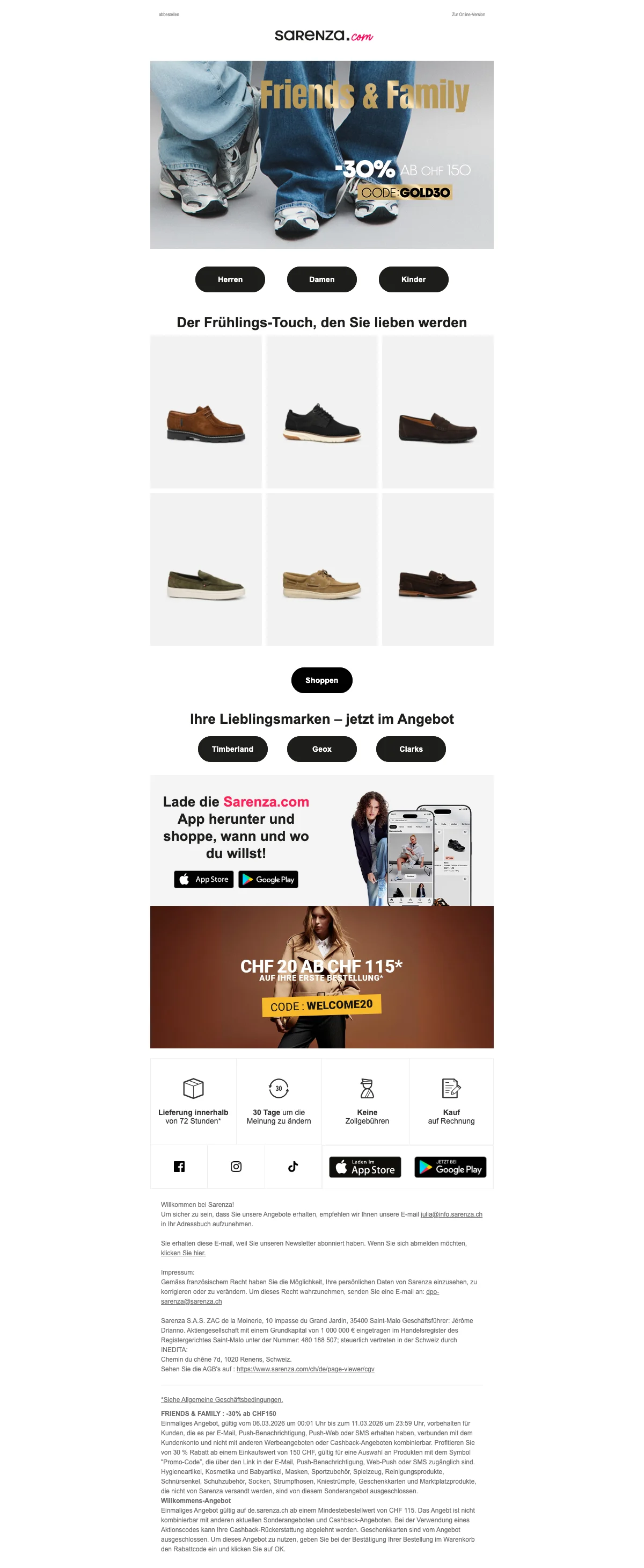Damit deine Füße im Herbst und im Winter nicht frieren müssen, hat Sarenza die verschiedensten Schuhmodelle für dich im Sortiment. Passend zu den kälteren Jahreszeiten gibt es tolle Stiefel online zu kaufen. Von Cowboystiefeln, bis hin zu Overkneestiefel, gibt es bei Sarenza Schweiz wirklich alles! Eine Frau kann nie genug Schuhe haben, von dieser Aussage sind wir überzeugt. Also hole dir dein neues Paar Lieblingsstiefel und lasse sie dir einfach bequem vor die Haustür liefern. So angenehm kann Einkaufen sein. Kein nerviges Anstehen an der Kasse mehr.