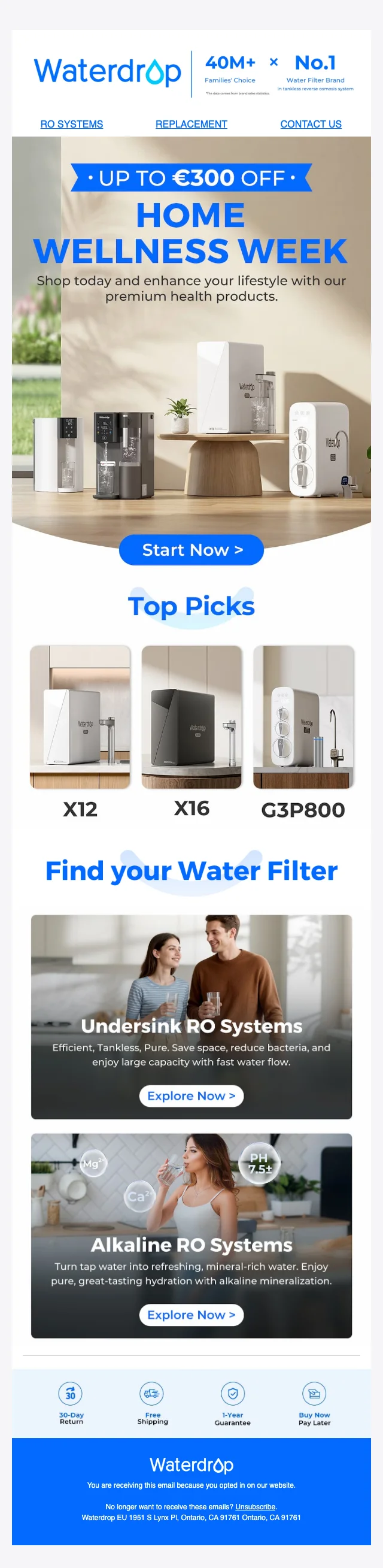 Als Dankeschön fürs Abonnieren erhalten neue Kunden einen 10% Rabattcode direkt per E-Mail. Diese exklusive Gelegenheit ist ideal, um unsere fortschrittlichen Wasserfiltersysteme zu testen und gleichzeitig zu sparen.